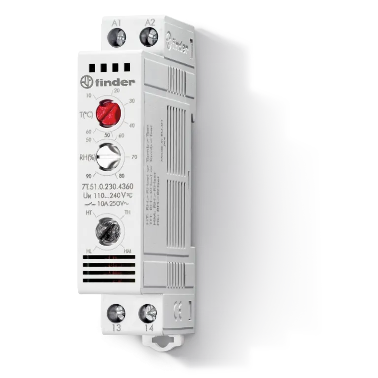 Termo-higrostato de cuadroTipo 7T.51 para control temperatura y humedad, tensión nominal 110… 240 V AC / DC.